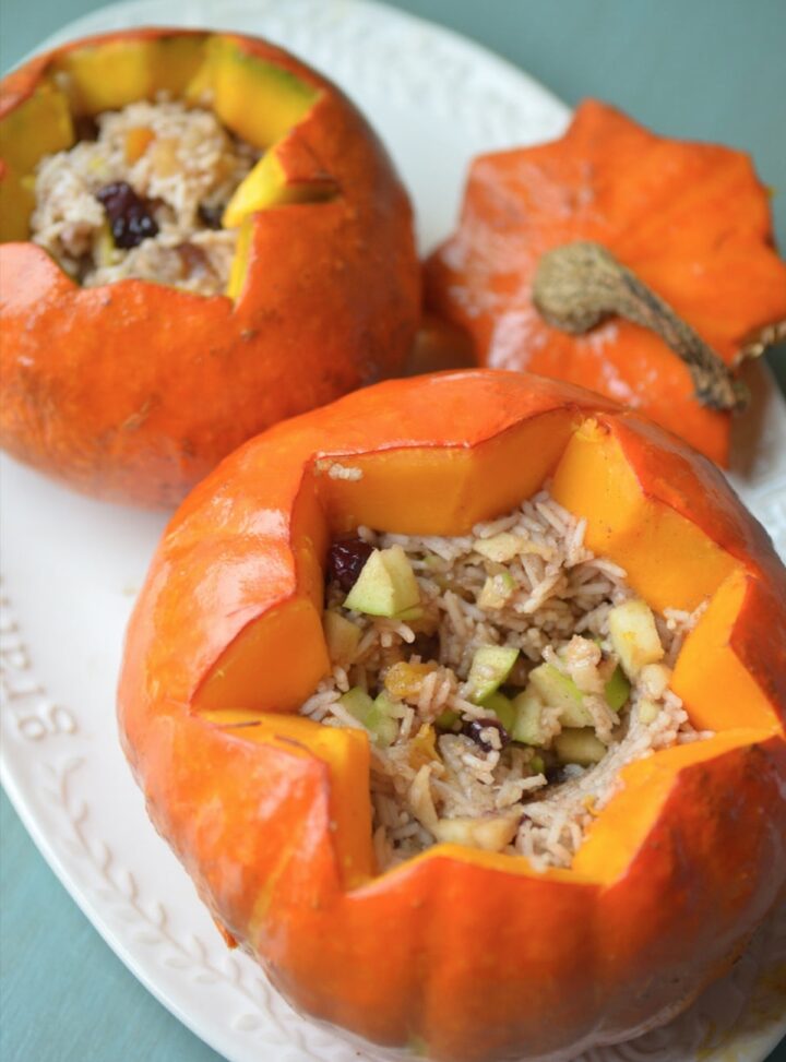 Le Ghapama (prononcer rapama) est un potimarron farci de riz, de fruits secs et de poudre de cannelle. C’est une recette arménienne ancestrale que l’on pose sur la table et que l’on partage en tranches.
