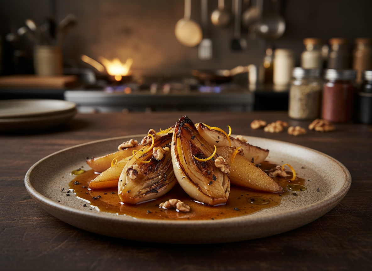 Une entrée chaude qui rappelle les ingrédients d’une entrée crue, mais qui, dans cette recette, peut même devenir un plat végétarien. Endives braisées au thé « Sous un Oranger » Kamélya, poires au miel et jus d’orange : en novembre, c’est le top départ de la saison des agrumes méditerranéens.