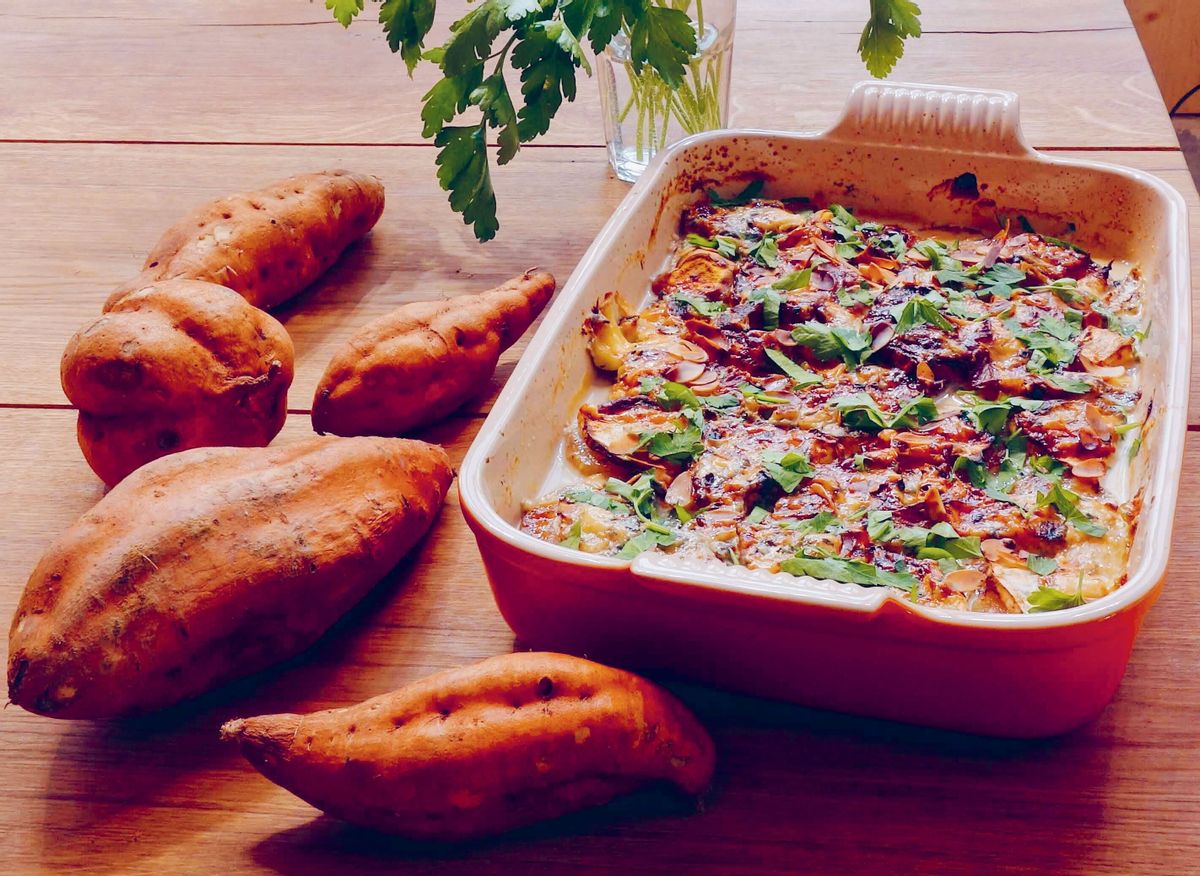 - Verser ce mélange sur les patates douces.